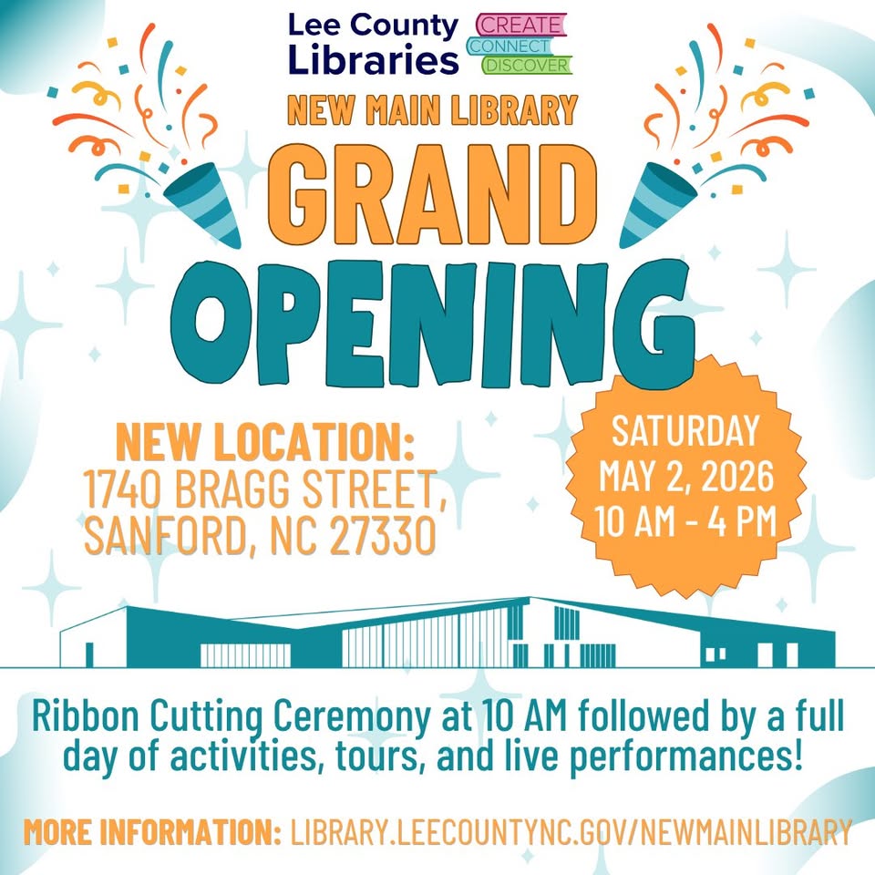 Lee County Main Library, 1740 Bragg Street, Sanford, NC 27330